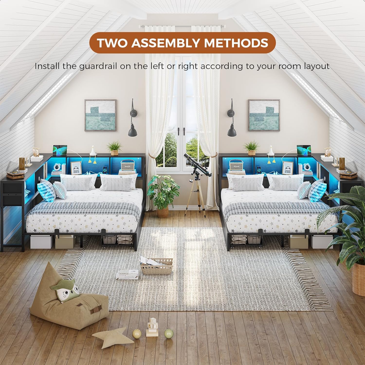 【Full Bed with Charging Station】The hang power socket comes with 2 USB ports and 2 AC outlets, making it convenient for you to charge while entertaining in bed without having to get up. You can hang the power strip anywhere on the bed guardrail as needed.
