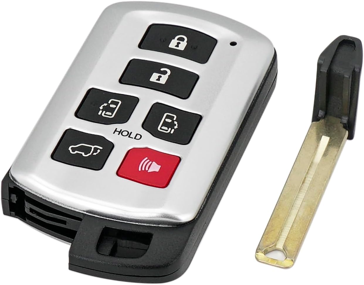REPLACEMENT: This Keyless Entry Remote Start Control Car Key Fob Replacement Is Compatible with Part Numbers: ‎89904-08010, 8990408010 6 Buttons: Lock, Unlock, Left sliding door, Right sliding door, Power door release (back gate), Panic alarm